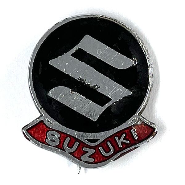 二輪車、及び四輪車のメーカーであるスズキ(SUZUKI)をモチーフにしたビンテージピンバッジです。