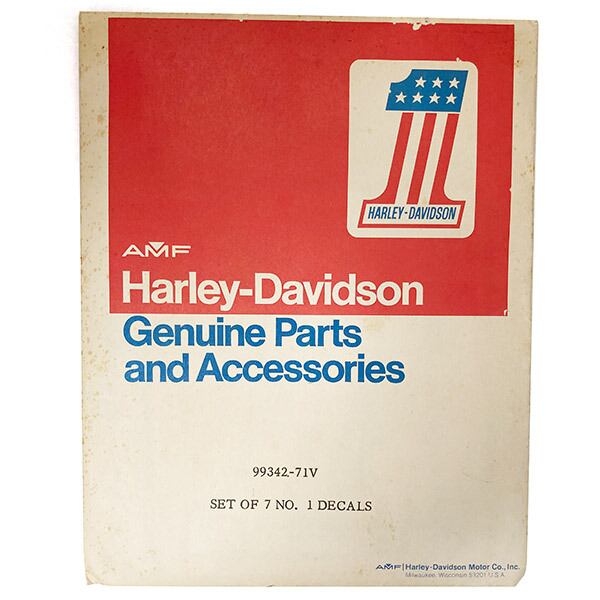 1970年台~80年代、AMF傘下時代のハーレーが採用していたNo,1ロゴをモチーフにした、大型のデッドストック ビンテージ ペーパー デカールです。バイク、ツールボックス等のドレスアップアイテムとして最適です。なお、非常に古い商品のためデカールに多少の傷、汚れ、縁のめくれがあります。利用には問題ありません。また、写真3枚目のパーツ袋は付属しません。上記についてご理解、ご了承の上お買い求めください