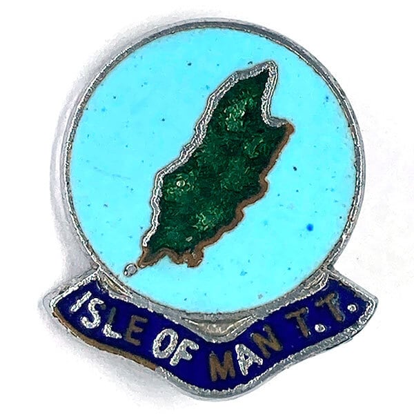 イギリス王室属国のマン島(ISLE OF MAN)で行われるマン島TTレースのピンバッジです。マン島レースで使用されるコースのイラストと三脚巴(トリスケリオン/Triskelion)が落とし込まれています。