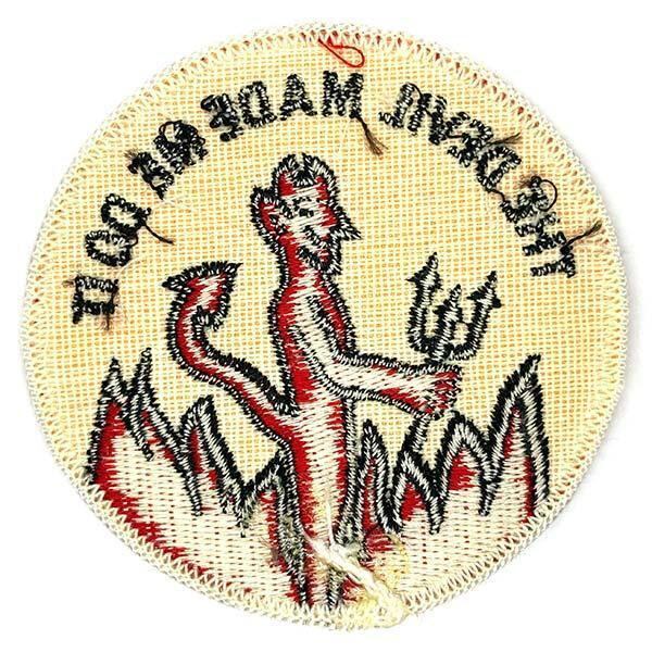 翻訳すると「悪魔が私にそうさせた(魔が差した)」のメッセージと悪魔のイラストが入った、ビンテージテイストのパッチです。