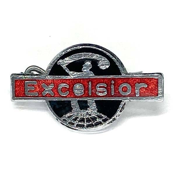 1896年にイギリスで初めてオートバイを事業化した企業、エクセルシオール(Excelsior Motor Co)のロゴ ピンバッジです。