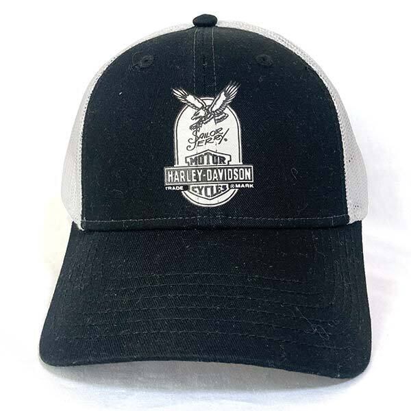 アメリカントラディショナルタトゥーアーティスト、セイラージェリーデザインのイーグルをモチーフにした、ハーレーダビッドソンのメッシュキャップです。サイズ調整は面ファスナー(マジックテープ)仕様です。